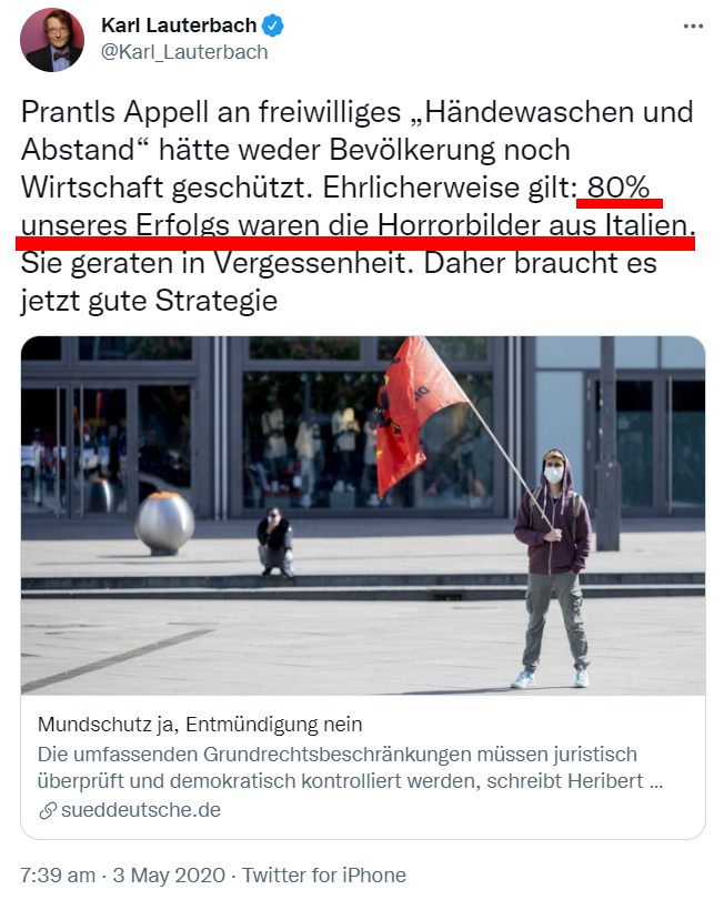 Niemand Geringerer als Karl Lauterbach hatte es am 3. Mai 2020 (wohl mehr unfreiwillig) auf den Punkt bringen können, als er jubelnd twitterte: