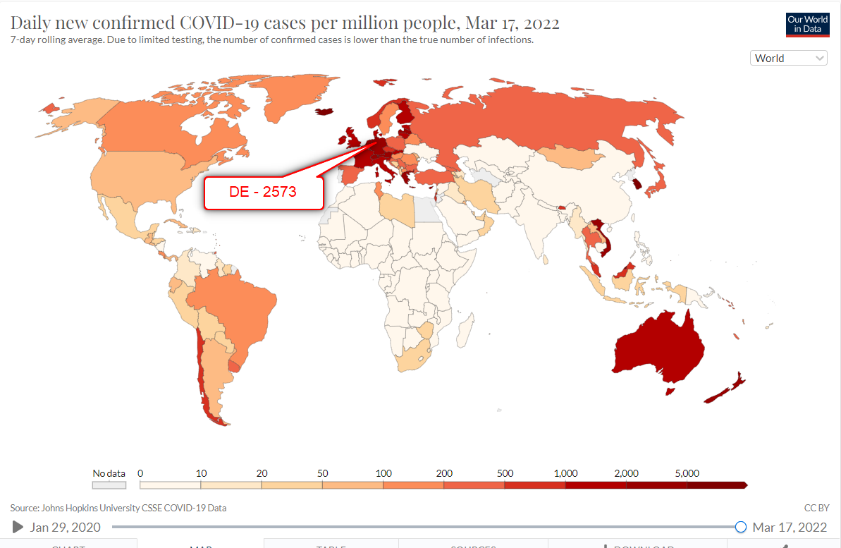Die Weltkarte mit den Fallzahlen gibt jedenfalls Grund für diese Annahme. Deutschland zählt auch hier zur Spitzengruppe:
