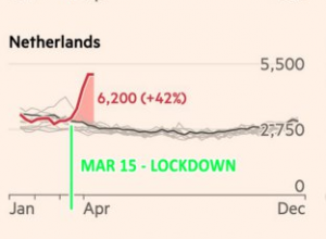 Mit einem plötzlichen Anstieg der Covid-19-Toten lässt sich dies kaum erklären. Oder aber man gibt zu erkennen, dass die Lockdown-Maßnahmen nutzlos waren und derartig hohe Todeszahlen zuließen. Außerdem müsste eine solche Erklärung auch zusätzlich erklären, warum das Virus diese Sterblichkeit nicht schon viel früher bewirkt und erst auf den Lockdown gewartet hat.
