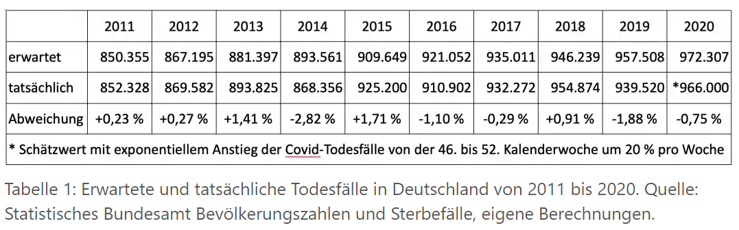 Professor Gill von der Ludwig-Maximilian-Universität berechnete dazu statistische Erwartungswerte für die Jahre 2011-2020 und verglich sie mit den tatsächlichen realen Zahlen. Die folgende Tabelle ist auf „Heise.de“ veröffentlicht worden: