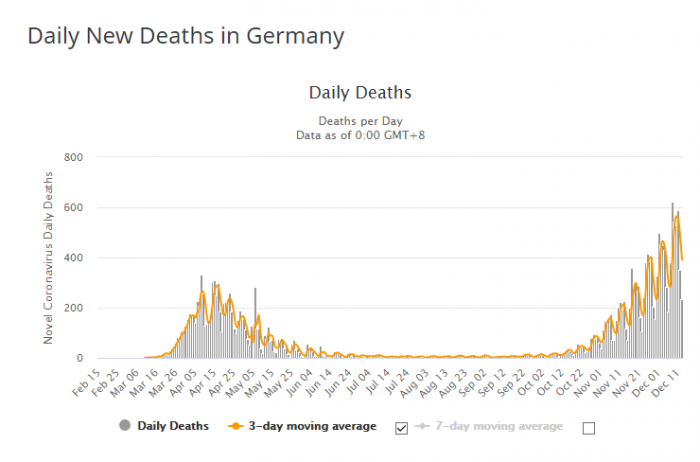 Worldofmeters führt folgende Todesfallzahlen an (oder mit) Corona an: