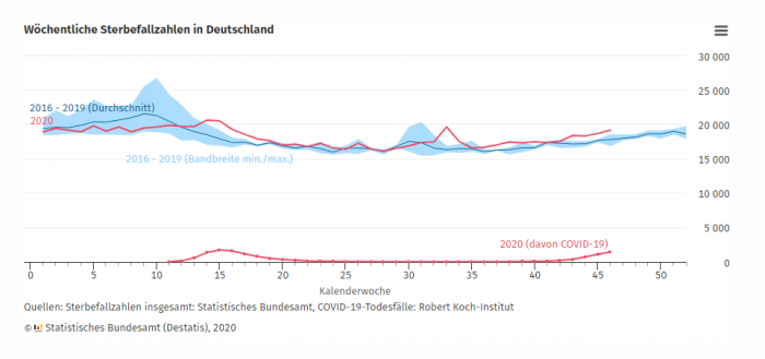 Und man sieht auch: Die „schwere Grippe“ blieb im Frühjahr aus. Klar: Corona ist im April zu erkennen – aber rechtfertigen diese Zahlen Kontaktbeschränkungen, Reiseverbote, Ausgangssperren, Gewerbeverbote?