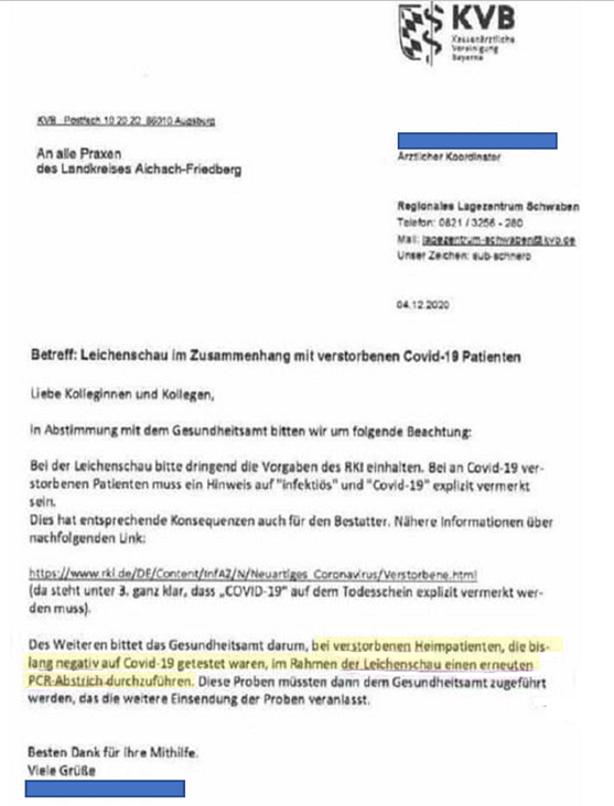 In folgendem Schreiben der Kassenärztlichen Vereinigung Bayerns an alle Praxen des Landkreises Aichach-Friedberg ist folgende Aufforderung zu lesen: