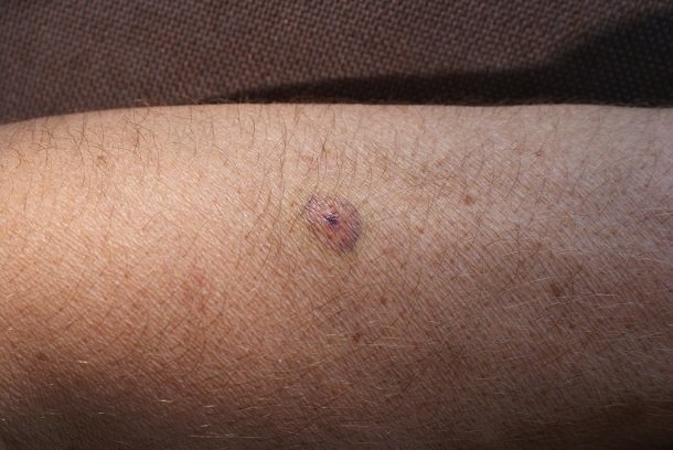 Abb. 2: Dieselbe Stelle am Unterarm nach 6 Tagen. Ein leichtes Jucken ist noch zu verspüren und es wird nur ein kleiner Narbenpunkt bleiben.