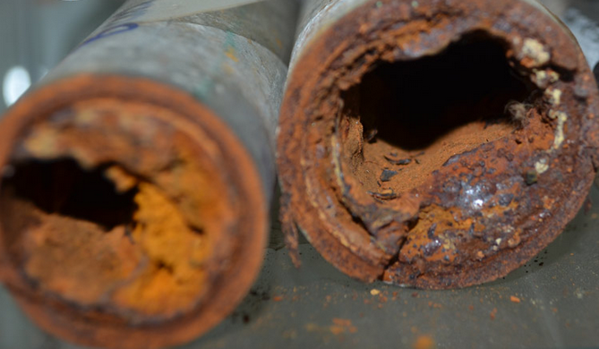 Ich möchte Euch nicht die Illusion verderben, allerdings sind diese Werte immer nur die Werte, die im Wasserwerk gemessen werden. Was dann auf dem langen Weg zu den Haushalten passiert, zeigen Querschnitte von älteren Wasserrohren: