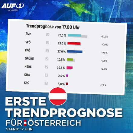 In Österreich sieht´s anders aus, die FPÖ mit Herbert Kickl ist eindeutig Wahlsieger, die Altparteien mussten wohl Verluste einfahren: