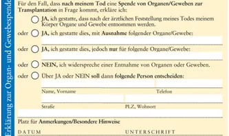 "JA, ich gestatte, dass nach der Feststellung meines Todes meinem Körper Organe und Gewebe entnommen werden."