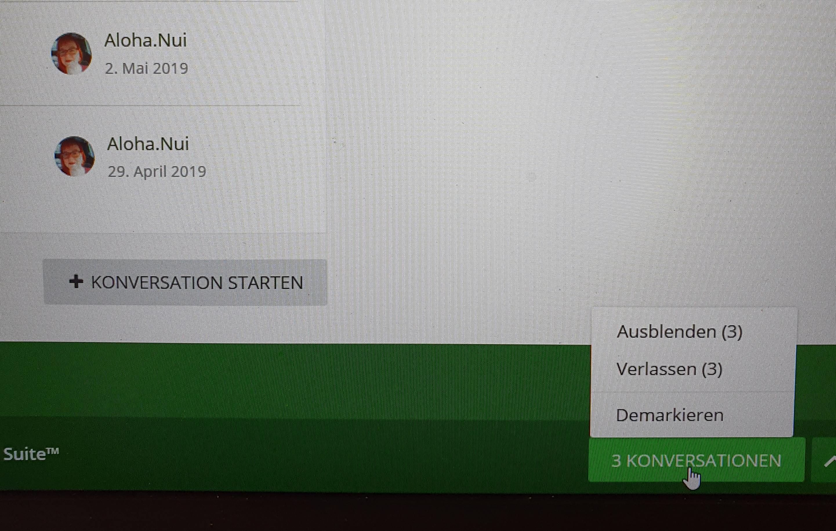Bei mir steht dann unten rechts "Konversation Starten".
