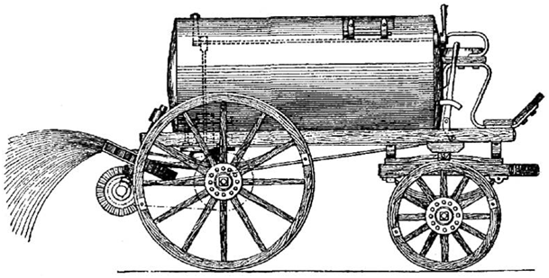 Hier ein Sprengwagen als Pferdewagen aus dem 19. Jahrhundert: