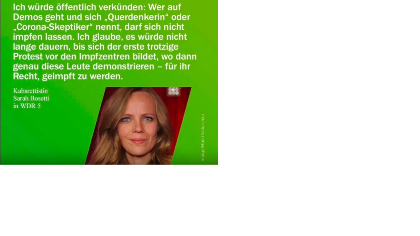• Aussage dieser Sarah Bosetti in ihrem Video "Hört mal genau hin, ihr Querdenker ....":