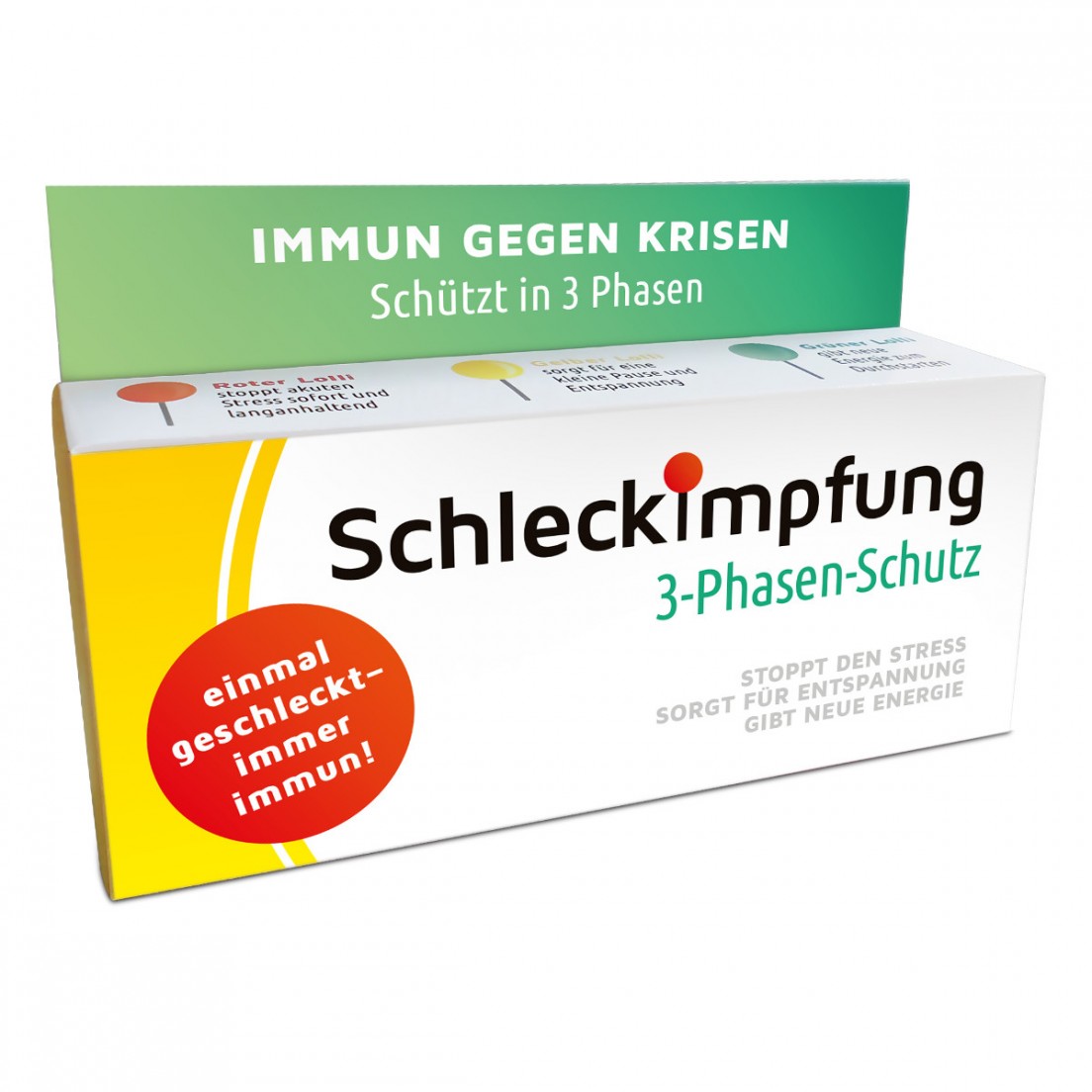 Das „Konzept“ der Dreifachimpfung (Stress stoppen, für Entspannung sorgen, neue Energie geben) hat uns auf ganzer Linie überzeugt; wie genau die ohne Frage schleckeren Edelfrucht-Lollis das konkret bewerkstelligen wollen, bleibt allerdings ihr süßes Geheimnis. Sicher ist immerhin, dass eine süße Belohnung, jemand, der an einen denkt und eine kleine Auszeit schon viel bewirken können, um nicht wirklich die Krise zu kriegen.