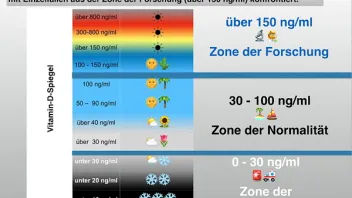 Millionen Menschen aus der Zone der Fürsorgepflicht (unter 30 ng/ml) werden mit Einzelfällen aus der Zone der Forschung (über 150 ng/ml) konfrontiert. Durch diese Übertreibung wird die sichere Normalität unterschlagen!"