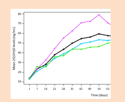 Die tägliche orale Einnahme von Vitamin D3 im Bereich von 5.000 IE/Tag bis 60.000 IE/Tag über mehrere Jahre hinweg wurde sowohl von unseren Patienten als auch vom Personal gut vertragen und war sicher. Es scheint etwa 12 Monate zu dauern, bis der mittlere 25OHD-Blutspiegel bei unseren Patienten bei 5.000 IU/Tag und 10.000 IU/Tag ein Plateau erreicht.