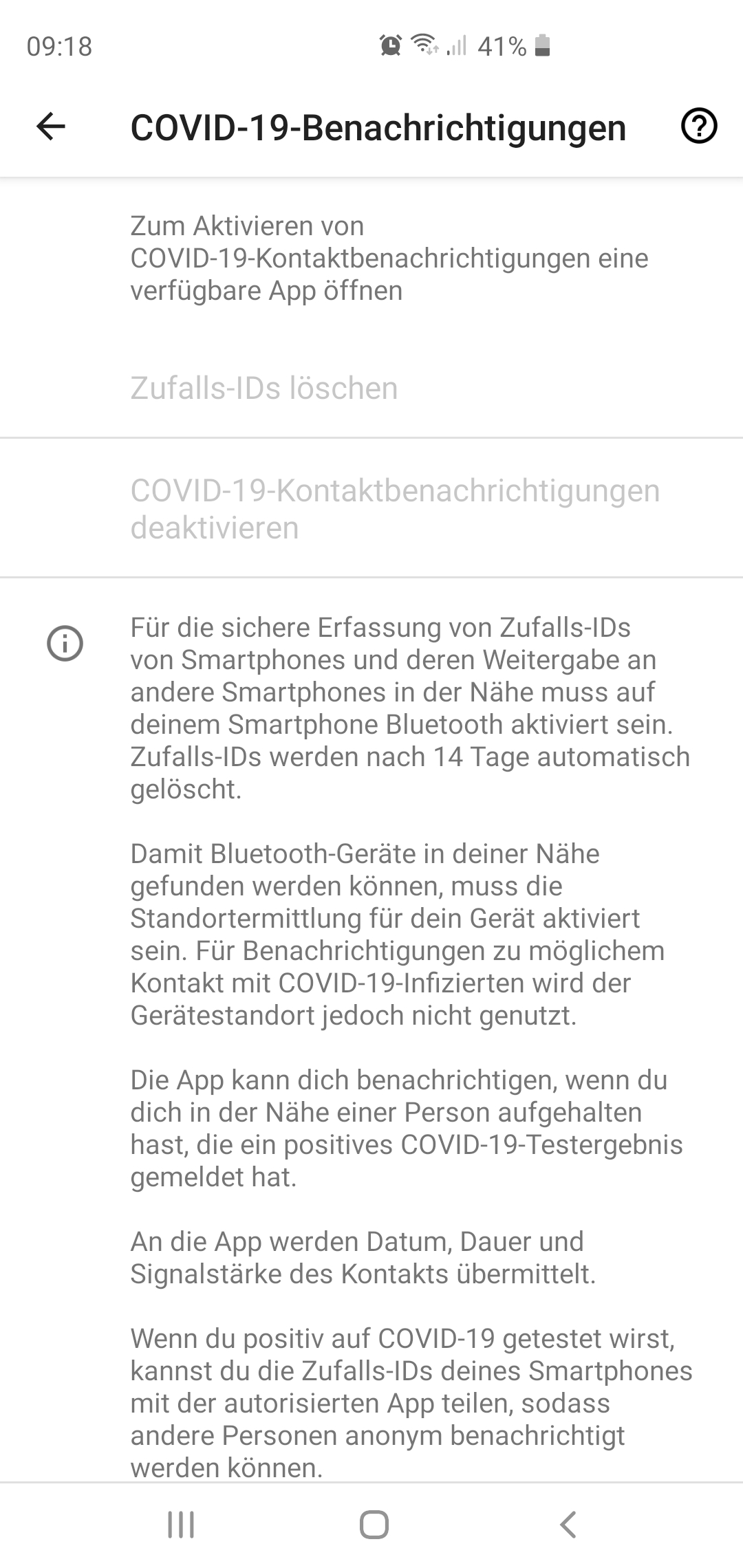 Aktuelles: Habe die Schnittstelle der Corona App nun auf meinem Smartphone gefunden.