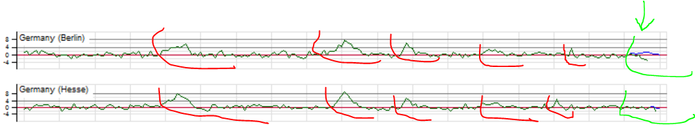 es deutet auch nichts darauf hin das es in DE anders verläuft als in Österreich (halt etwas zeitlich versetzt) , bei Euromomo sind zwar nur 2 Bundesländer (DE) dabei, da schaut auch alles sehr gut aus (zumindest gegen die letzten Jahre verglichen), und DE und AT haben ein vergleichbares Gesundheitssystem (DE sogar noch etwas mehr Bettenkapazität) , und diese sind noch lange nicht ausgelastet (zeit.de/wissen/2020-04/krankenhaeuser-kapazitaeten-coronavirus-patienten-deutschland/seite-2)