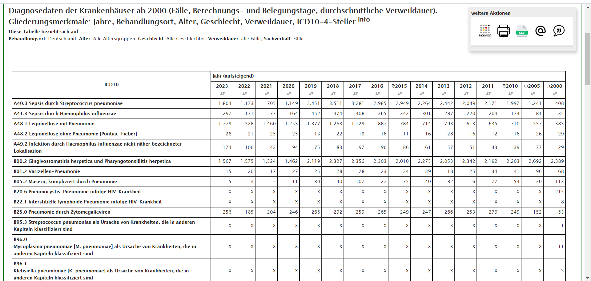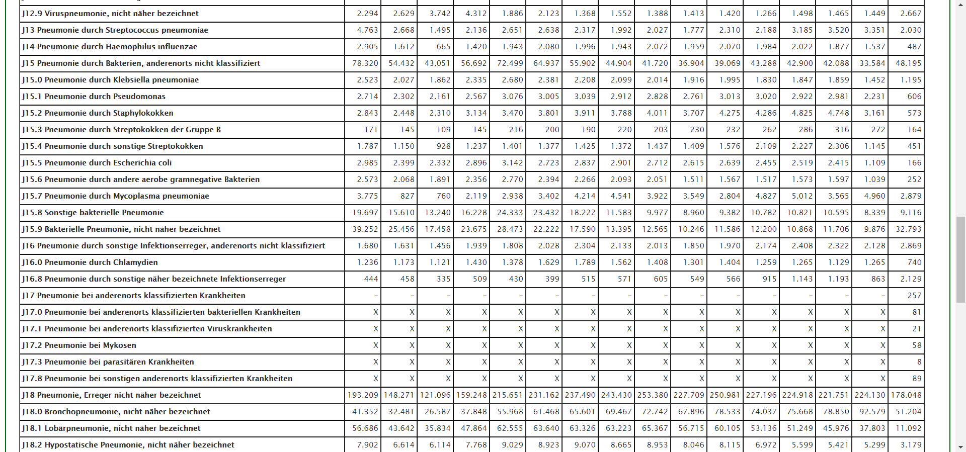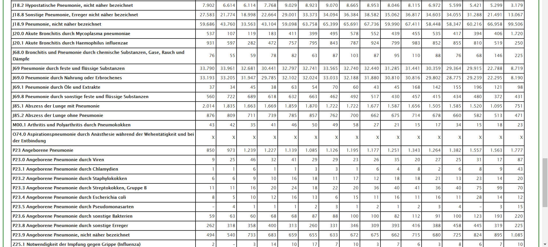Deshalb hier die Krankenhausfälle pro Jahr zu Grippe und Pneumonie: