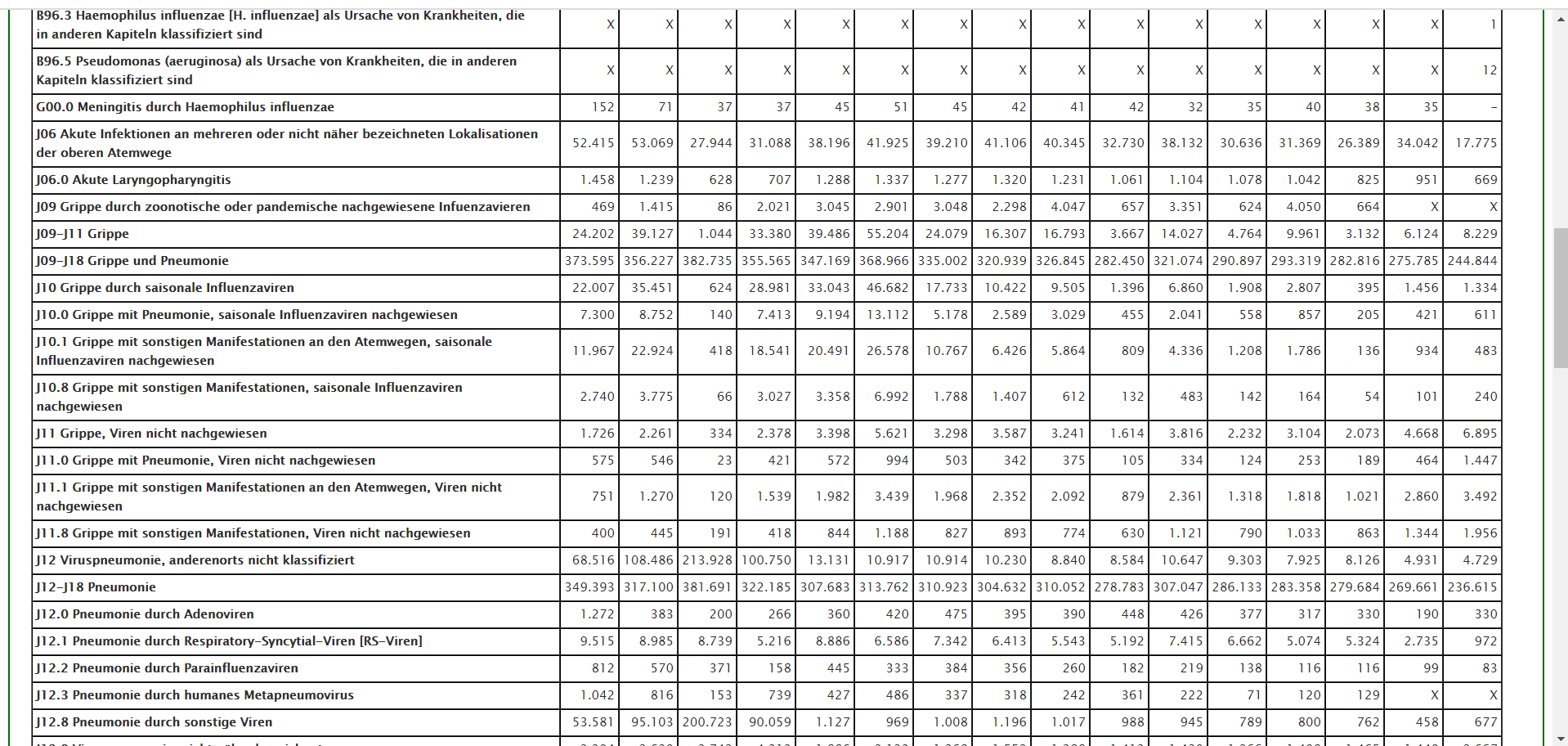 Das weiß ich deshalb so genau, weil ich es für ein Jahr, in dem über besonders viele Grippefälle berichtet wurde, verfolgt habe und einfach Jahre später bei der GBE kontrolliert hatte. Und dann waren es für das entsprechende Jahr tatsächlich genau 24 nachgewiesene Grippefälle.