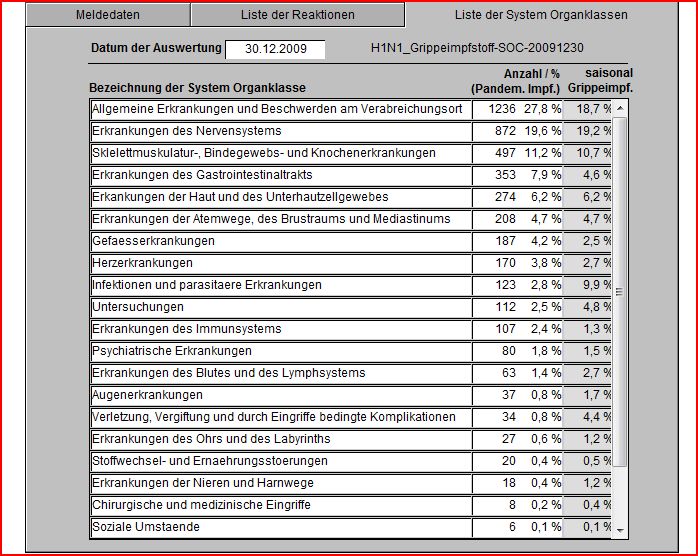 Was ich jetzt gefunden habe, ist eine Auswertung aus 2009 von der PEI mit Vergleich der damaligen Nebenwirkungen von Pandemrix im Vergleich zur Grippeimpfung.