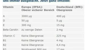 Kleines PS: Zur Vorgeugung und Gesundherhaltung nehmen ja viele Nahrungsergängzungen, vor denen die Mainstreammedien ja unentwegt warnen, dass sie überdosiert wären (im vergleich zu den Richtlinien in Dtl). Das sieht die EU aber offesichtlich ganz anders, denn dort sind viel höhere Werte als unbedenklich aufgeführt (siehe Dateianhang).