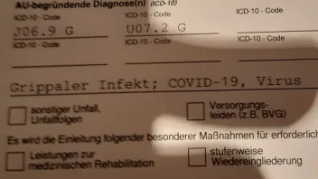Und jetzt glaubt ihr nicht, was er auf der Krankmeldung stehen hat. ( hat er selbst erst zuhause draufgeschaut)
