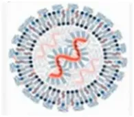 Auf der unteren Grafik das Gegenteil, ein minderwertiges Nanopartikel. Die Lipidhülle ist nicht gleichmäßig geschlossen und hat teilweise langkettige PEG-Ketten auf der Hülle gebildet. Solch ein Lipidnanopartikel ist nicht stabil, löst sich auf oder wird zerstört, die mRNA gelangt also nicht mehr in die Körperzelle.