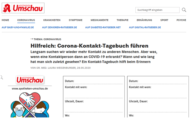 man solle ab Herbst ein Kontakttagebuch führen, in dem jeder seine täglichen Kontakte einträgt.