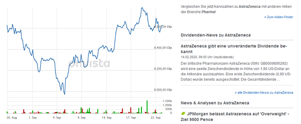 • Das scheint allerdings niemanden zu interessieren, wie man am Aktienkurs von Astrazeneca (26.08. - 22.09.) erkennen kann:
