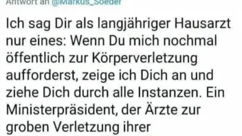 • Solche Aktionen von Schulen lassen aber wirklich aufhorchen! Hier zeigen sich deutliche Parallelen zum 3. Reich. Sind nun die Schulen neue SA und SS-Truppen? Wie verkommen ist dies Land eigentlich schon? Übereifer, Kadavergehorsam, Denunziantentum, schlimmer geht nimmer, die alte Blockwartmentalität ist allenthalben sichtbar und spürbar. Vermutlich glaubt diese SA-Lehrerschaft auch noch den Jugendlichen was Gutes anzutun! Jugendliche die auf gar keinen Fall gefährdet sind! Und dann noch Elternärzte! Hier braut sich was in diesem Land zusammen was wir längst als erledigt betrachtet haben - HIER STINKTS, ABER GANZ GEWALTIG!!!