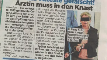 Sie soll an 5 Sammelterminen 2021 und 2022 bundesweit (nix mit Reichsbürgern) auf Bestellung Atteste für Menschen ausgestellt haben, die sich nicht impfen lassen wollten. Sie soll das trotz Warnung der Landesärztekammer Sachsen weitergemacht haben.