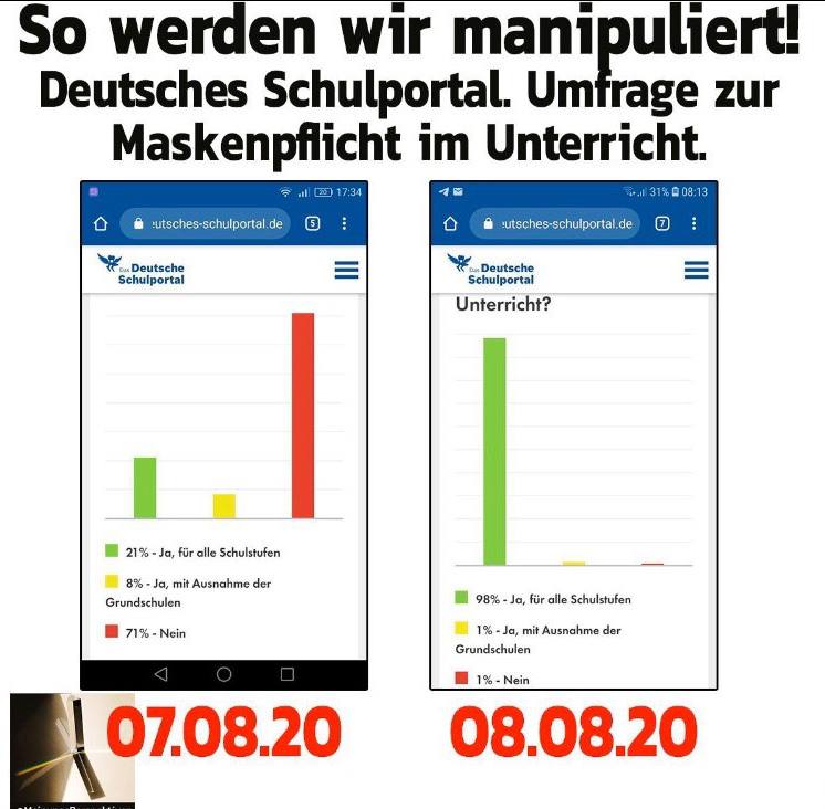 Gegen Maskenpflicht im Unterricht ist sicher die Mehrheit, ich glaube, da ist man sich einig wie hier über 70%: