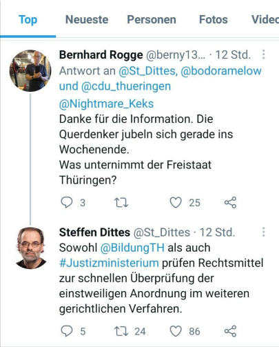 Am 11.04. gab es diesbezüglich schon ein Twitter-Post von Steffen Dittes (stellvertretender Vorsitzender der Linken im Thüringer Landtag) mit dem Hinweis, dass das Justizministerium die Angelegenheit bereits prüfe: