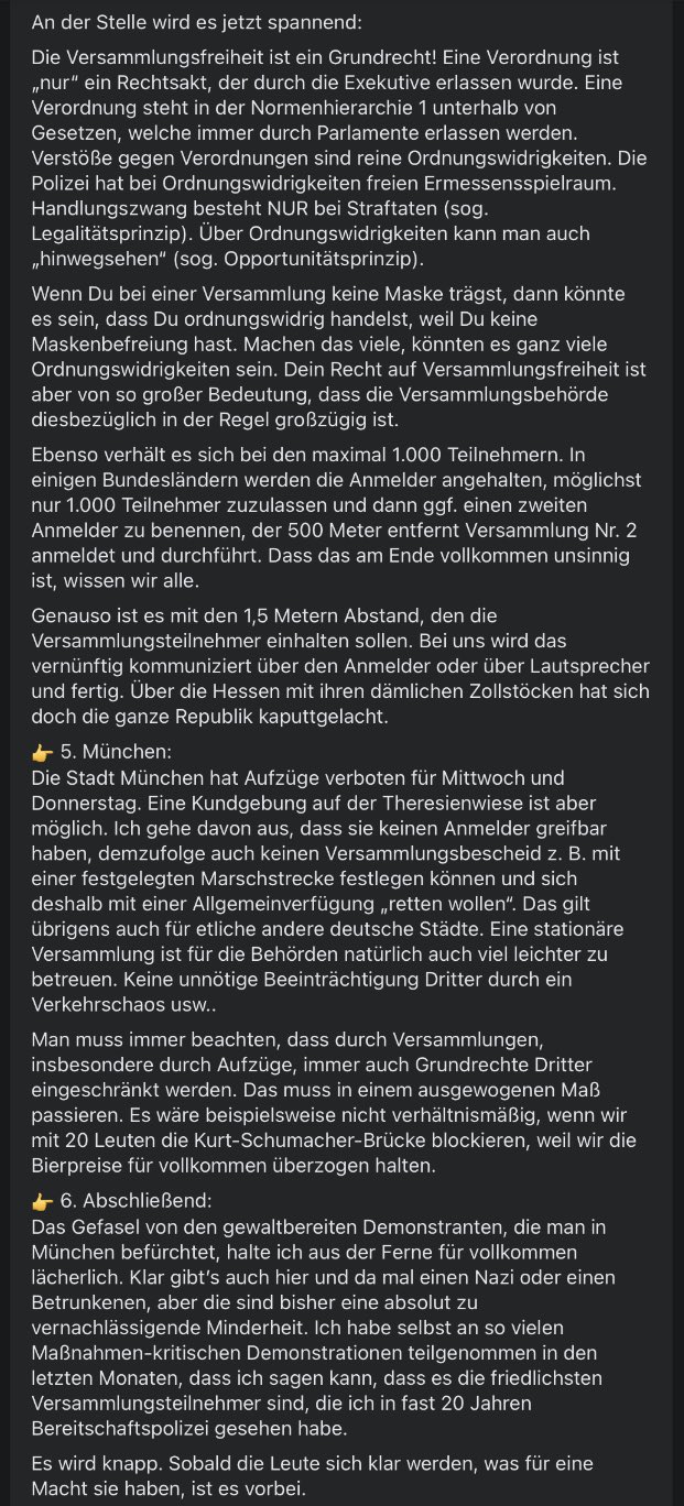 Die polizeilichen Kapazitäten haben die Belastungsgrenze erreicht: „Es wird knapp. Sobald sich die Leute klar werden, was für eine Macht sie haben, ist es vorbei.“ Eine Analyse, die jeder Demo-Organisator und spazieren gehende Bürger (auch in spe) lesen sollte.Ein Statement von Herrn Gelau (Rubikon news) enthält die Analyse eines langjährigen Bereitschaftspolizisten zur Situation der nun quasi immer und überall stattfindenden Spaziergänge kritischer Bürger, die für Grund – und Freiheitsrechte auf die Straße gehen.