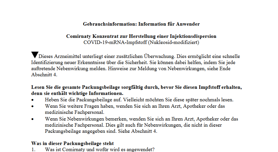 Das schwarze Dreieck direkt am Anfang des ersten Absatzes sollte dabei schon mal ein Alarmzeichen sein. Es bedeutet nämlich, dass Arzneimittel mit dieser Kennzeichnung unter einer noch strengeren, zusätzlichen Überwachung stehen. Dies passiert immer dann, wenn zu ihnen weniger Informationen als zu anderen Arzneimitteln zur Verfügung stehen.