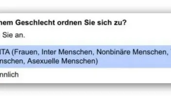 • Auch die Ostbayerische Technische Hochschule Regensburg (OTH Regensburg) hat das weibliche Geschlecht praktisch abgeschafft. Für die genderwütige Hochschulführung gibt es nur noch Männer. Frauen gibt es dort nicht mehr. Diese haben sich im links-grünen Blödsinnsuniversum der staatlichen Hochschule als FINTA einzusortieren. Das sieht dann auf Fragebögen dieser Irrenanstalt so aus: