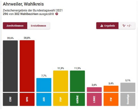 Bin auch enttäuscht, dass die AfD nur bei knapp 11% lag, weil ich das anders geschätzt hatte und die sonstigen Parteien nur bei 8,9%.