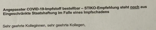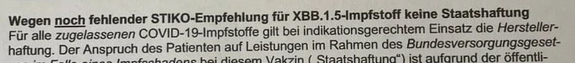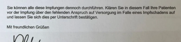 Bei genauem Lesen wurde allerdings lediglich eine Haftungsbefreiung für die Bereiche erklärt, die die MedBVSV abweichend vom Gesetz (AMG) regelt, also keine Beipackzettelpflicht, keine Inhaltsdeklarationspflicht, abgelaufene Vakzine dürfen verimpft werden, keine Rückstellproben für jede Impfcharge.