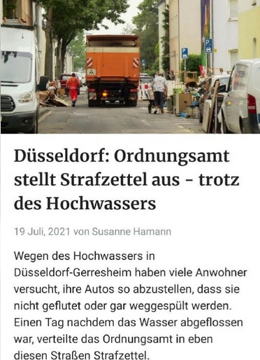 In Düsseldorf verteilt das Ordnungsamt Knöllchen an Autofahrer, die wegen der Rheinfluten noch schnell ihren Wagen in Nebenstraßen geparkt hatten, um sie vor den Fluten zu retten: