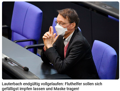 .... aber ein Impfbus muss jetzt dringend ins Ahrtal geschickt werden! Wahrscheinlich, um gegen jede medizinische Vernunft Helfer, die vor Müdigkeit geschwächt sind, gegen Covid zu impfen.