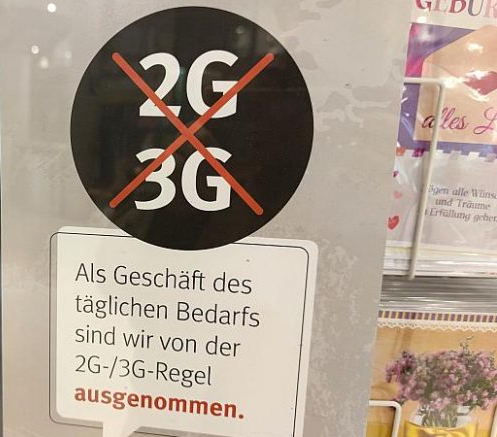 Mein Buchhändler ist ebenfalls von der 2G-/3G-Regelung ausgenommen. Genau gegenüber auf der anderen Straßenseite hat dieser Buchhändler allerdings einen zweiten Laden, hier aber gilt die 2G-/3G-Regelung. Grund. Es handelt sich um ein Buchantiquariat und damit gehört dieses Geschäft nicht mehr zum Bereich des täglichen Bedarfs. Zwischen beiden Geschäften liegen ca. 8 oder 9 Meter.