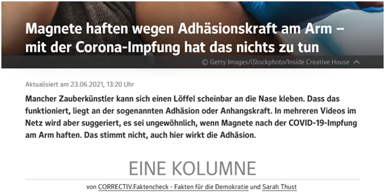 • Damit eine Münze auf der Haut klebt braucht es nur etwas schwitzige Haut. Aber im Fall der Impfungen konnte man es nicht nur mit einem Gerät nachmessen, sondern manche haben sich auch ziemlich schwere Teile an die Haut geklebt.