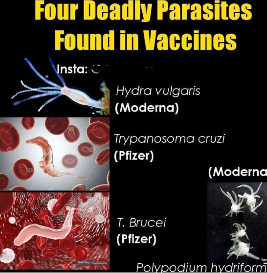 • Die in den Genspritzen gefundenen Parasiten, über die ich schon vorher geschrieben hatte, auch wenn es immer noch nicht vollständig ist, da auch mit AZ gespritzte gemäß der Links auf der ersten Seite nicht davor sicher sind: