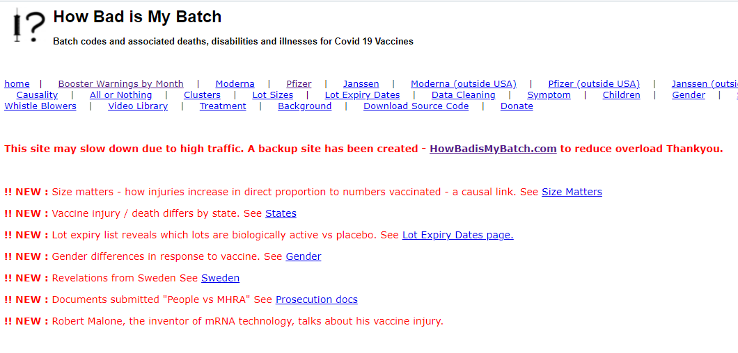 Die Website https:/ / www.howbadismybatch.com/ fragt nun „Wie schlecht ist meine Charge?“ und listet Todesfälle und Verletzungen nach Hersteller und „Impfstoff“-Chargennummern auf.