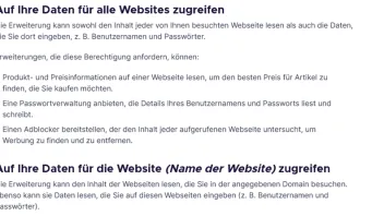 Verstehe ich das richtig, dass durch das Installieren dieses Add-ons eventuell auf meine Daten zugegriffen werden kann? Oder ist das nur ein allgemeiner Hinweis von Mozilla?