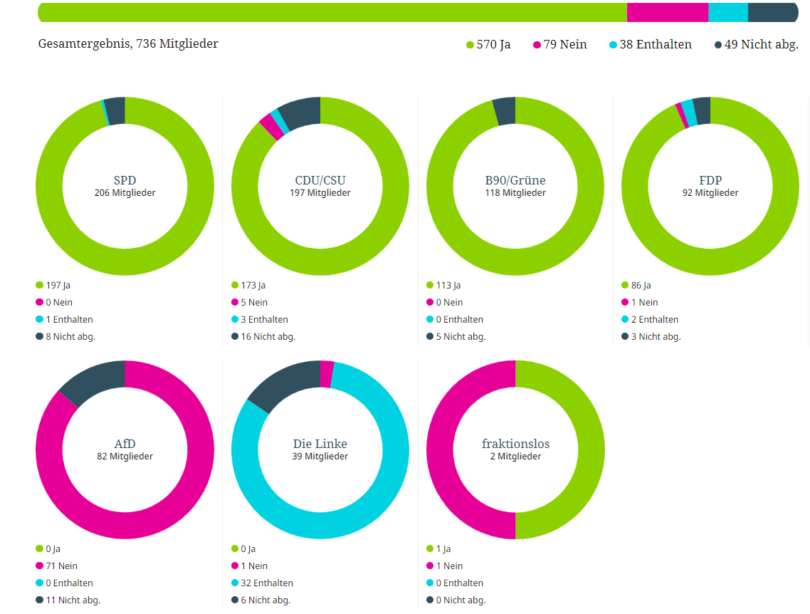 Woraus sich ergibt, dass auch CDU/CSU fast vollzählig für eine einrichtungsbezogene Impfpflicht gestimmt hatten, obwohl sie angeblich wie die SPD gegen Impfpflicht waren.