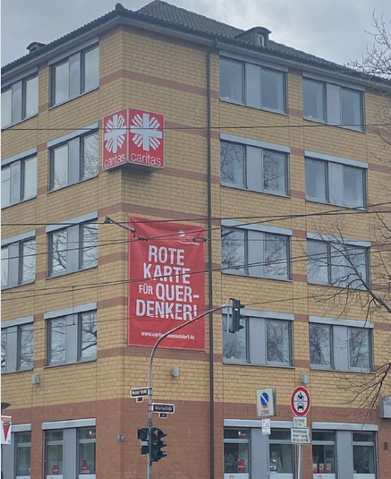 Öffentliche Diskriminierung von Caritas in Düsseldorf gegen Andersdenkende