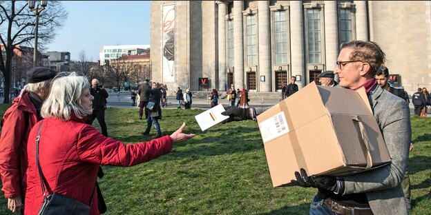 Da gibt es einen Anselm Lenz, Mitbegründer und Herausgeber der Wochenzeitung Demokratischer Widerstand. Der sich vom Amt für politische Bildung mehrere Kartons, gefüllt mit Exemplaren unseres Grundgesetzes, liefern lässt und diese anschließend in Berlin bei einem Spaziergang kostenlos an Passanten verteilt: