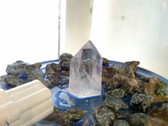 Um das Wasser mineralischer zu bekommen können Sie es in einer Karaffe stehen lassen und etwas Himalayasalz zugeben, oder Mineralsteine beilegen.