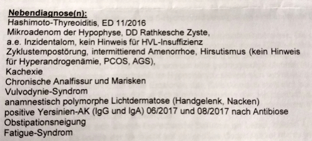 Die Schwestern und die Küche haben es nicht verstanden. Ärzte wollte meine Pilzbesiedlung behandeln, hatten aber kein Einfluss auf Küche und ich kann dort nichts selber kochen. Hungern oder fasten geht auch nicht, da ich schon im Untergewicht bin. Deshalb bin ich freiwillig gegangen, weil auch die Köchin, die sich mit Histaminintoleranzˍ und Fehlbesiedlung auskennt im Urlaub ist.