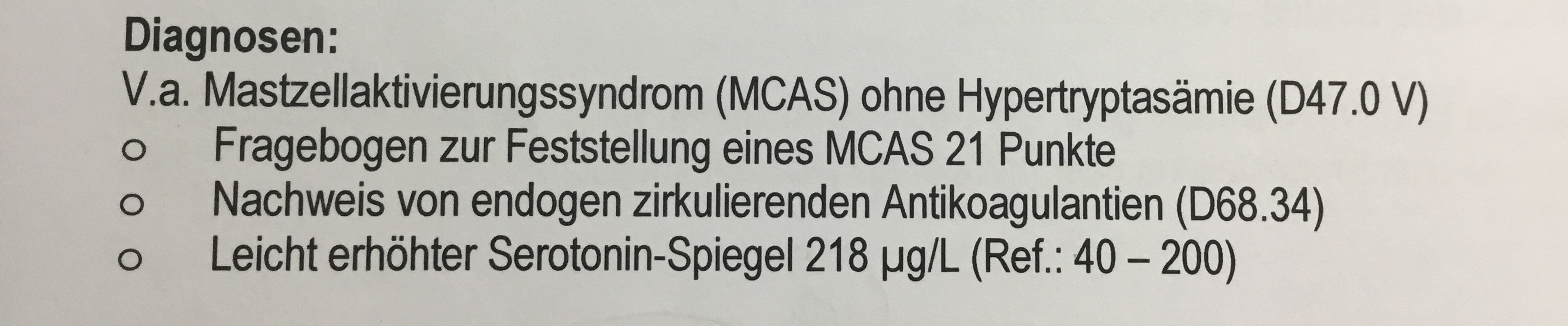 Seit ich in Bonn zur Darmspiegelung (Diagnosestellung Mastzellaktivierung) war geht dass aber nicht mehr. Nach dem Aufenthalt hatte ich 2 Wochen lang Durchfall und ein starkes Aufstossen nach dem Essen mit Brustschmerzen nach 30 bis 1 Stunde nach dem dem Essen. Ich reagiere jetzt auch auf gekochte Karotten, Kürbis und Mandelmilch. Selbst bei der Zucchini rumpelt es ordentlich. Butter und Milch verdaue ich jetzt auch nicht mehr.