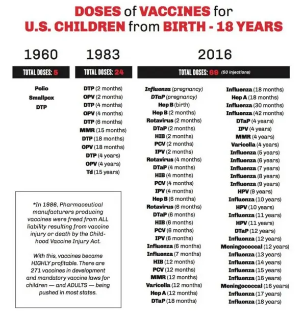 Keiner wird jemals entfernt. Unabhängig von den Beweisen. Unabhängig vom Schaden. Unabhängig von der öffentlichen Gegenreaktion. wie radikal sich der Impfplan für Kinder seit den 1980er Jahren verändert hat.